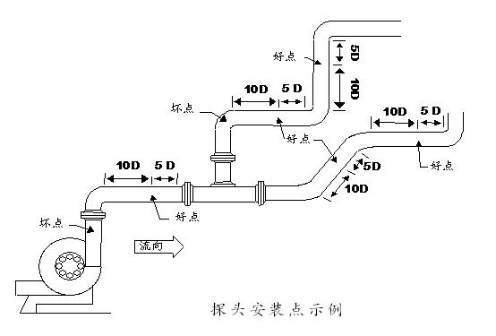 選擇測(cè)量點(diǎn)時(shí)要求選擇流體流暢分布均勻的部分,為保證測(cè)量精度。一般應(yīng)遵循下列原則: